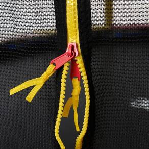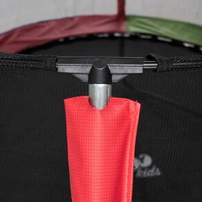 Possuí rede de proteção com zíper para garantir maior segurança, ponteiras coloridas com espuma, molas resistentes, capa colorida que protege as molas, lona de salto emborrachada com proteção UV. Sistema de montagem prático, estrutura em aço.