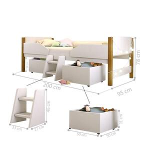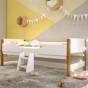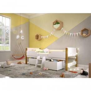Ela vem com escada, barra lateral de proteção, nichos para brinquedos, cordão de luz LED com 10 bolinhas (não acompanha pilhas), e colchão (Solteiro 14x88x188 cm).