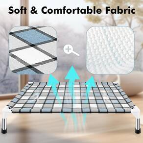 - ?Design elegante de camas para cães?Não apenas priorizando o conforto, nossas camas elevadas para cães também enfatizam o design elegante. O conceito minimalista de design de grade azul e branca a torna parte integrante da decoração da casa, adicionando um toque único de sofisticação à sua casa.