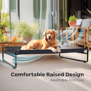 - Cama grande elevada para cães. Composto de aço revestido com pó e malha têxtilene. 109 x 76 x 22 cm, cabe até 50 kg. Adequado para Golden Retriever, Labrador, Rottweilers, Boxers, Huskies, Border Collie, Samoieda, Lobo etc.