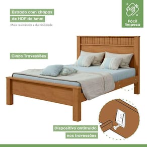 Caracteristicas: Altura dos Pes; 16 cm Altura do Estrado ate o Chao; 40 cm Material Principal; MDF/MDP Acabamento; Pintura Escala de Brilho; Fosco Material dos Pes; MDF Acabamento dos Pes; Pintura Material do Estrado; MDF Tipo de Cama; Convencional Tamanho do Colchao; Casal Suporta Ate (kg); 200 kg Permite a Utilizacao de Cama Auxiliar; Nao Possui Pes; 04 Tipo de Estrado; Removivel Acompanha Cama Auxiliar; Nao Acompanha Colchao; Nao
