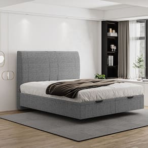 ESPECIFICAÇÕES DO PRODUTO Material da estrutura: Madeira de reflorestamento; Revestimento: Tecido Linho. Cama para colchões 184 x 196 Altura da cabeceira: 144cm; Comprimento total: 203cm; Largura total: 193 cm; Altura da base: 39 cm: Suporta até 500 Kgs Peso: 80kg.