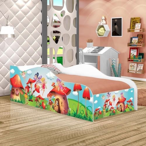 A Cama Carro Solteiro conta com adesivagem nos painéis, com design moderno e direcionado para o conforto, bem-estar e segurança da criança, conferindo um ambiente alegre, colorido e divertido.