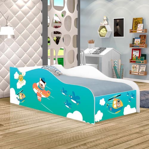A Cama Carro Solteiro conta com adesivagem nos painéis, com design moderno e direcionado para o conforto, bem-estar e segurança da criança, conferindo um ambiente alegre, colorido e divertido.