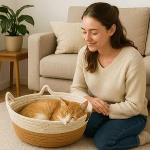Cama Gato Arranhador Ninho Cestinho Caminha Rasqueável Pet Cama Gato Arranhador Ninho Cestinho Caminha Rasqueável Pet Cama de Gato Cestinho com Orelhinhas - Caminha Arranhador Confortável, Lavável e Resistente Design Divertido para Pets A caminha mais fofa e funcional que o seu gatinho vai amar Com formato redondo e um detalhe encantador de orelhinhas de gato, essa Caminha-Cestinho é perfeita para transformar o espaço do seu pet em um cantinho cheio de conforto, diversão e estilo. Feita com corda de algodão trançada e acabamento em tecido de linho lavável, ela é super resistente, higiênica e confortável. Além de aconchegante, também funciona como um arranhador natural, ideal para o seu gato afiar as garrinhas com segurança, sem danificar móveis da casa. Leve, portátil e decorativa, essa caminha combina com qualquer ambiente e pode ser Utilizado com ou sem almofada. Benefícios do Produto: Design exclusivo com orelhinhas de gato Ideal para gatos de todas as idades Funciona como arranhador natural Confortável, resistente e decorativa Corda de algodão trançada com acabamento em linho Lavável e fácil de higienizar Leve, portátil e versátil Perfeita para descanso e brincadeiras Especificações Técnicas: Cor: Bege Material: Corda de algodão + tecido de linho Altura: 13 cm Diâmetro: 42 cm Circunferência: 1,30 m Conteúdo da Embalagem: 1 Caminha de Gato tipo Cestinho com Orelhinhas Marca: Não Informado Ean: 7894454430918