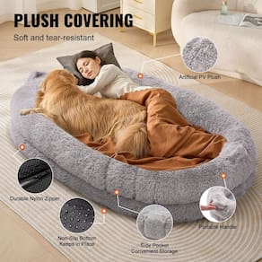VEVOR Cama para cães humanos, cama de cachorro gigante de 183 x 122 x 25 cm para adultos, cama de tamanho humano com capa de veludo fotovoltaico lavável, espuma ortopédica para ovos, bolso de - Nova cama aconchegante para relaxar e cochilar: nossa cama de cachorro humano de 182 x 122 x 25 cm oferece um espaço de descanso espaçoso e confortável para você e seu amigo peludo. Aconchegue-se de perto e fortaleça seu vínculo com seu animal de estimação. - Confortável e durável: feita com uma esponja de reciclagem e colchão de espuma de caixa de ovos, nossa cama de cachorro humano para adultos oferece suporte resistente. A superfície de veludo PV oferece um toque macio e amigo da pele, garantindo o máximo conforto para você e seu animal de estimação. A parte inferior de PVC antiderrapante aumenta a estabilidade e evita deslocamentos. - Portátil e conveniente: a cama para cães de tamanho humano possui alças laterais e uma bolsa de armazenamento para facilitar o transporte. Os bolsos laterais oferecem armazenamento prático para telefones, livros e muito mais. Após o uso, coloque-a à vácuo na bolsa de armazenamento e coloque-a em qualquer lugar da sua casa, do quarto à sala de estar, sala de jogos ou escritório. - Fácil de limpar: com uma capa com zíper, nossa cama de cachorro para humanos é fácil de remover e não requer montagem. Para limpar, basta abrir, remover a capa de pelúcia e lavar na máquina, o que é simples e sem complicações. - Uso versátil: a cama para cães de tamanho humano oferece um refúgio aconchegante para relaxamento e alívio da ansiedade. Desfrute de leitura, jogos e momentos felizes com seu animal de estimação. Também serve como cama de dormir ou cochilar, adequada para a sala de estar, quarto ou até mesmo o escritório.