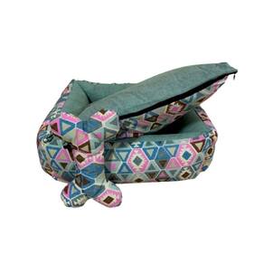 - cama com travesseiro em formato de ossinho; - cama em tecido tricoline e gorgurinho e bagum no fundo que protege da umidade; - zíper em todas as laterais, bem escondido; - enchimento em fibra siliconada para melhor estrutura; - dupla face; - cama toda impermeável sem perigo caso molhar; - totalmente lavável mesmo sendo impermeável; - para cães e gatos de pequeno porte; - cor: Verde com detalhes em rosa;