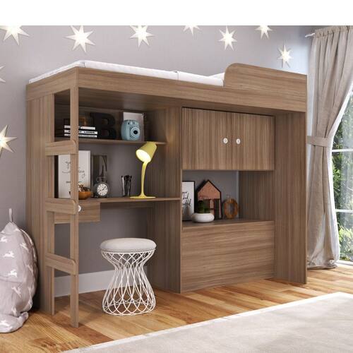 Caracter?sticas: Estrutura MDP Acabamento em Finish Foil Acetinado Altura do estrado 138 cm Montagem do ba? direito/esquerda Escrivaninha com gaveta Prateleiras e arm?rio