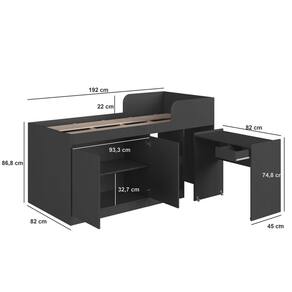 Cama Infantil Alta Multifuncional com Escrivaninha 2 Porta 1 Gaveta Jamaica Art in Móveis - Preto
