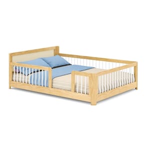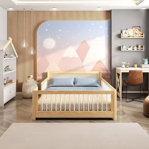 A Cama Montessoriana Wave com Rattan e cantos arredondados e grade palito , é perfeita para garantir mais autonomia aos pequenos. No modelo casal, garante mais espaço para sonecas e brincadeiras em família. Um projeto lindo, perfeito para trazer magia ao quarto.