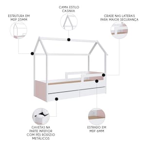 A Cama Infantil Casinha Com 2 Gavetas Infix C06 Branco/Rosa, da Mpozenato, é perfeita para quem procura unir funcionalidade e diversão no Quarto Infantil.