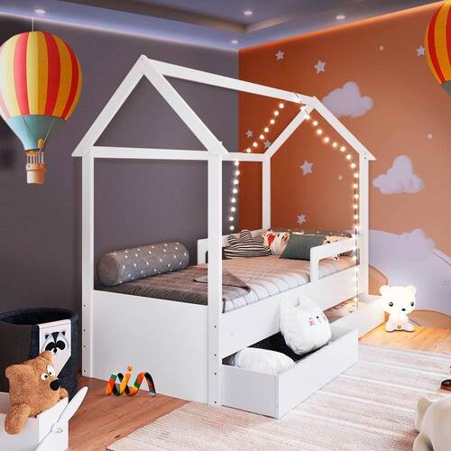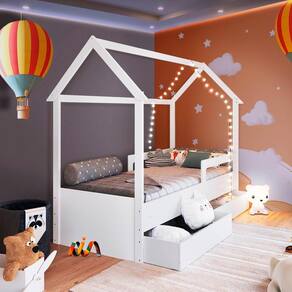 - Design em formato de casinha, que estimula a imaginação das crianças na hora das brincadeiras, e também torna a hora de dormir mais atrativa, incentivando uma rotina de sono saudável.