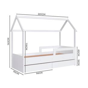 Dimensões da cama:Largura 95 cm; Profundidade 201 cm; Altura 163 cm.