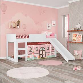 A brincadeira agora tem local para acontecer, no quarto da sua filha, cama infantil Doce Casinha MDF/MDP com escorregador, é incrível, além de moderno e divertido, aproveita muito o espaço do quarto, para sua filha ter seus momentos de criatividade e diversão, cortina com uma estampa linda e escorregador que pode ser montado dos dois lados da cama, dando mais cor e vida para o ambiente.