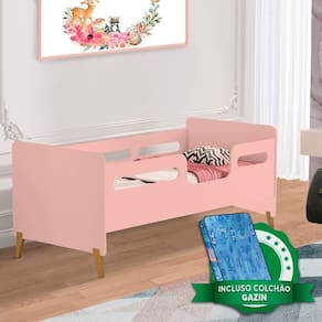 Cama Infantil Com Grade Rose Cecilia Vj Móveis Com Colchão Gazin