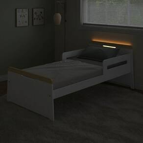 1x Cama Solteiro com Led Petit MadeiraOriginals Branco/Mel Largura: 194 cm Altura: 76 cm Peso: 30,4 kg Profundidade: 104 cm Necessita Montagem: Sim