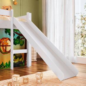 A Cama Infantil Elevada com Escorregador da Completa Móveis é um produto que foi pensando em unir conforto e diversão. A cama possui 02 degraus e escorregador para o acesso da criança a cama. Na parte inferior tem um espaço para que elas possam brincar e se divertir de diversas maneiras. Acompanha cortina com tema de quarto infantil e presilhas para fixação. As medidas da cama são 110 cm de altura, 202 cm de largura, 93 cm de profundidade e o escorregador possui 117 cm de comprimento.