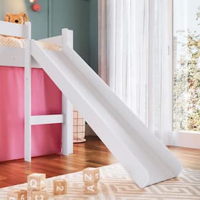 A cama infantil elevada com escorregador da Completa Móveis foi desenvolvida para oferecer conforto e diversão em um só produto. Composta por dois degraus para facilitar o acesso e um escorregador que transforma a hora de brincar em momentos ainda mais especiais, a cama proporciona um ambiente lúdico e seguro. Na parte inferior há um espaço livre que pode ser utilizado para brincadeiras criativas ou para organizar brinquedos e acessórios, tornando o quarto mais funcional. O produto acompanha cortina rosa com presilhas para fixação, que cria um visual encantador e estimula a imaginação das crianças. Recomenda-se o uso de colchão de 188 x 78 cm, não incluso. As medidas da cama são 110 cm de altura, 202 cm de largura, 93 cm de profundidade e o escorregador possui 117 cm de comprimento.