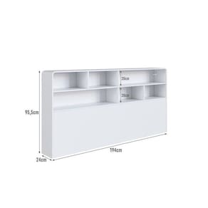 1x Estante para Cama Infantil em Mdp 194cm Infanto Branco Largura: 194 cm Altura: 95,5 cm Peso: 34,1 kg Profundidade: 24 cm Necessita Montagem: Sim