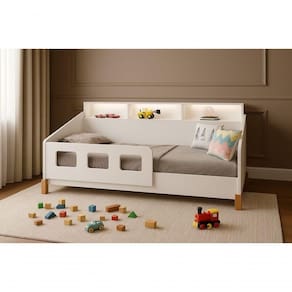 Um produto exclusivo, que traz modernidade e sofisticação. Possui nichos que contém Led. Uma grade de proteção que traz maior . Feito com materiais de uma qualidade ótima. Ela é uma cama Juvenil, que é bem moderna e possui pés em madeira maciça !!!