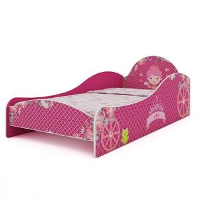 A Cama Infantil MDF Princesinha Gelius para o quarto da sua princesa, com as laterais da cama projetadas para serem barras de protecao ela conta com design exclusivo e arte impressa, o charme fica a cargo dos desenhos que simulam uma carruagem de princesa. Esse produto e desenvolvido com materia prima 100 MDF e acabamento UV.