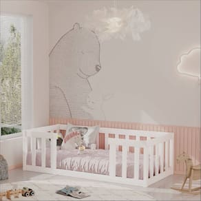 Seu projeto montessoriano, estimula a independência da criança, deixando-a descobrir por si só os primeiros passos e obstáculos, de forma segura, onde ela sozinha irá subir e descer da cama. Uma peça ideal para trazer a diversão e a segurança para os dias e noites das crianças. A cama conta com uma grade alta em todo seu redor garantindo maior segurança durante as noites.