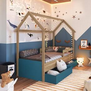 A Cama Infantil Montessoriana Casinha Solteiro Menino Menina com Proteção Lateral e Gavetas com Rodas da Completa Móveis traz um conceito Montossori lúdico com o conceito para estimular a autonomia e aperfeiçoar o potencial criativo das crianças desde a primeira infância. Com grades laterais de proteção e com cantos arredondados, propicia mais para o seu pequeno.