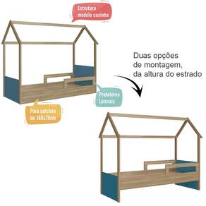 Características Estrutura Modelo Casinha em MDP Acabamento Fosco Protetores Laterais Estrado Lastros em MDF cru Sapatas Plásticas Possui ainda duas possibilidades de montagem na altura do estrado, sendo rente ao chão ou 21,2 cm Suporta até 80 kg sem Impacto IDEAL PARA COLCHÃO 188 X 78cm NÃO ACOMPANHA COLCHÃO