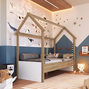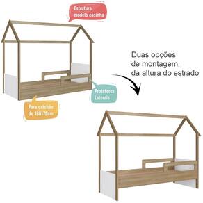 Cama Infantil Montessoriana Estilo Casinha CCM010 Linha Infanto Aveiro OAK Branco Completa Móveis
