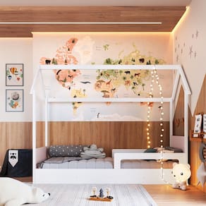Características Estrutura Modelo Casinha em MDP Acabamento Fosco Protetores Laterais Estrado Lastros em MDF cru Sapatas Plásticas Possui ainda duas possibilidades de montagem na altura do estrado, sendo rente ao chão ou 21,2 cm Suporta até 80 kg sem Impacto IDEAL PARA COLCHÃO 188 X 78cm NÃO ACOMPANHA COLCHÃO
