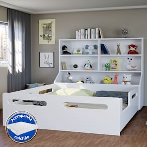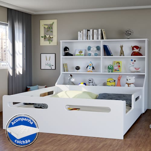Estante integrada: facilita a organização de livros, brinquedos e objetos decorativos.