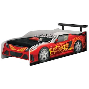 A Cama Infantil Sport Car possui na parte frontal uma abertura abaixo da peseira para facilitar a limpeza e na traseira possui um aerofólio decorativo.