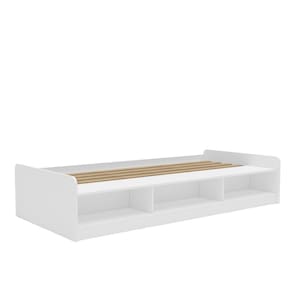 A Cama Infantil Solteiro Dora 90,5cm Politorno possui 90,5 cm de largura e é confeccionada com estrutura em MDP de 15 mm, proporcionando resistência e durabilidade. O acabamento em FF confere um toque moderno e elegante ao móvel. Esta cama também oferece três nichos integrados, perfeitos para armazenamento prático de objetos, suportando até 10 kg cada. É indicada para colchões de tamanho com sua estrutura. O limite de peso total permitido para a cama é de 100 kg. O design inclui sapatas redondas que protegem o piso e oferecem estabilidade adicional.