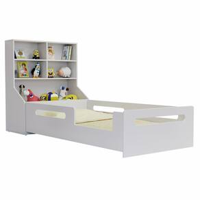 O destaque está na cabeceira com nichos, ideal para acomodar brinquedos, livros, pelúcias e itens decorativos, mantendo tudo ao alcance e contribuindo para a organização do espaço. As laterais auxiliam no uso diário, proporcionando mais praticidade.