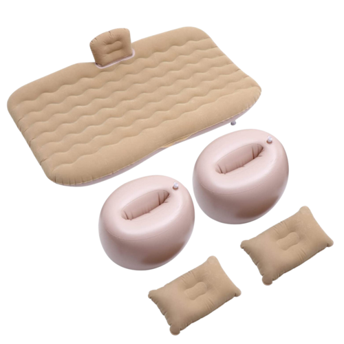 Cama Inflável Colchão Carro Veicular Viagem Bege Resistente - Cor: Bege / Caramelo