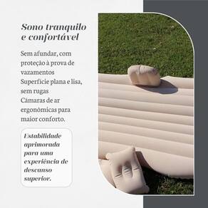 Com design elegante e resistente a fricção, impactos e umidade. Fabricado com material de alta qualidade, superfície flocada que é macia e confortável, sem prejudicar o seu corpo. Leve, fácil de dobrar e transportar, além de ser super resistente. Equipado com bomba de ar elétrica com adaptador para o acendedor de dos veículos. Infla e desinfla rapidamente. Acompanha dois travesseiros infláveis. Tamanho: 85cm x 45cm 135cm Tecido: Veludo respirável Marca: Globalcompras