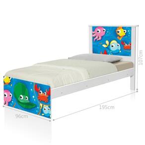 Cama Juvenil Zap com Cabeceira Fundo do Mar Peixinhos - Branco
