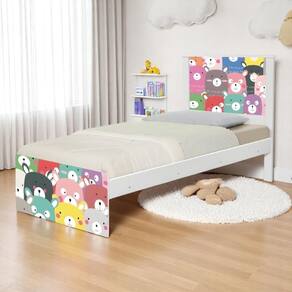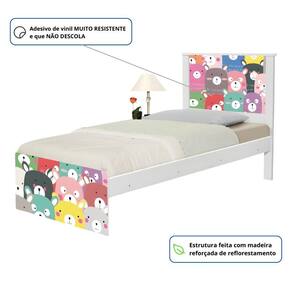 Cama Solteiro Juvenil Barcelona Adesivada Ursinhos Coloridos com Colchão