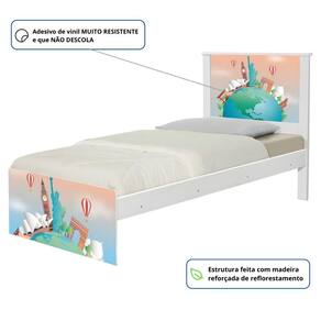 Cama Solteiro Juvenil Barcelona Adesivada Volta ao Mundo com Colchão