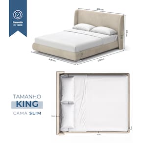 Disponível em tecidos boucle exclusivos e previamente selecionados de alto padrão e em medidas para os tamanhos (Casal, Queen ou King), a Cama Damie é estruturada em madeira de reflorestamento de Eucalipto Saligna. (possui resina natural anti-cupim) tratadas e beneficiadas para evitar empenamentos.