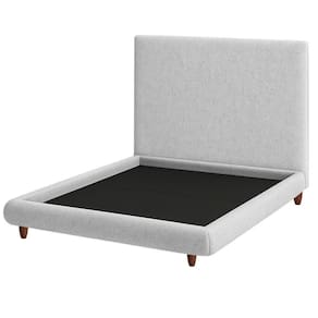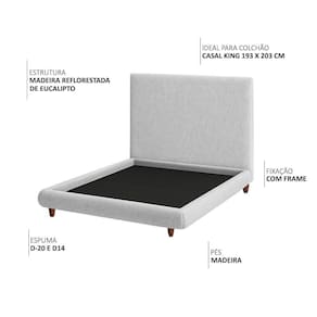Cama King Pés Madeira Emma Com Cabeceira Parise Linho Cinza Claro - Nexta Casa