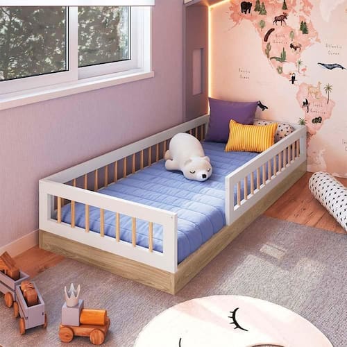 A Cama Montessoriana de Solteiro Linha Affetto da Completa Móveis traz o melhor do estilo Montessori para o quarto de bebê ou infantil. Um conceito lúdico para estimular a autonomia e aperfeiçoar o potencial criativo das crianças desde a primeira infância. Com grades em Pinus, trazendo leveza e um toque diferenciado no design. Produto em MDP com estrados em MDF. O produto é entregue desmontado.