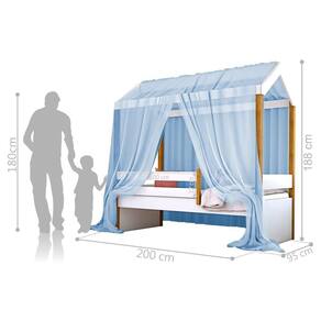 Cama Montessori Cabana Solterio Com Dossel Azul Cama Montessoriana Exclusiv Solteiro com Voal Azul