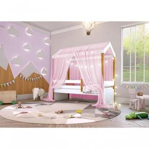 Cama Montessori Exclusiv Fio de Luz Colchão e Voal Rosa