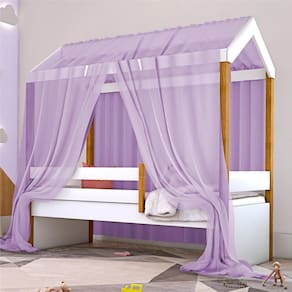Cama Montessori Exclusiv Solteiro com Colchão e Voal Lilás