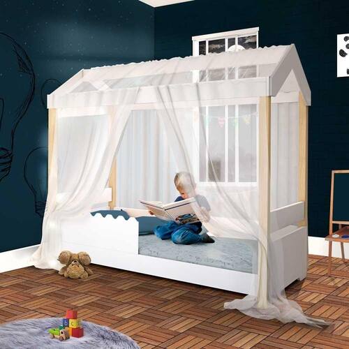 A cama montessoriana Jhulia, da Divaloto, é linda e cheia de detalhes! Possui um exclusivo design em formato de casinha, despertando o lado lúdico das crianças. O estilo montessoriano foi criado com o intuito de fazer um ambiente onde a criança possa ter autonomia e liberdade, com tudo ao alcance de seus olhos. Conta ainda com um voal, que serve tanto para proteção da criança durante o sono, como também para embelezar o quartinho, deixando-o ainda mais encantador! Ah, lembrando que essa cama não acompanha colchão, e você deve comprá-lo separadamente.