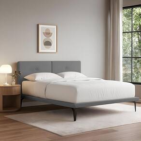 Cama Montessoriana Adulto Ninho Eiffel Queen com Cabeceira Almofada Linho Cinza