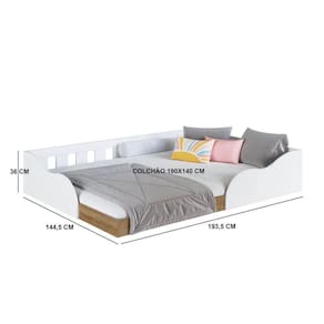 A cama montessoriana casal CM6140 possui estrutura em MDP 15mm e acabamento FF fosco. Possui protetor com canto arredondado e perfil em PVC. A cama suporta até 300kg. O material do estrado é MDP. Medida máxima do colchão indicado: CASAL: 138cm x 188cm. Não necessita fixar na parede. Conteúdo da embalagem: móvel, ferragens e manual de montagem. A fixação das peças e/ou acessórios é feita por parafusos, cavilhas e minifix. Para uma limpeza mais efetiva, utilizar apenas pano macio umedecido e sabão neutro. Não utilizar produtos abrasivos. Garantia de 03 meses contra defeitos de fabricação. Medidas do produto (AxLxP): 36x193,5x144,5cm. Peso do produto: 35,7kg. Não acompanha colchão.