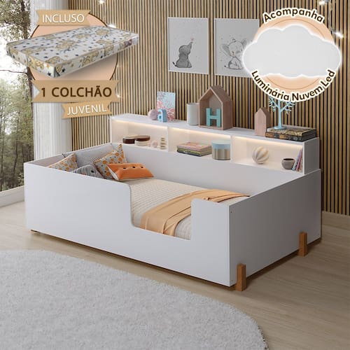 Cama Montessoriana Doçura Juvenil Branca Acompanha Uma Luminária + Colchão - Branco