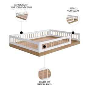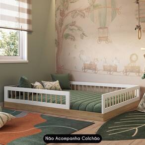 Características do Produto Material da estrutura: MDP 25 mm. Peso Suportado: 160 Kg. Revestimento: Pintura BP. Possui Pés: Sim. Tipo dos Pés: Rodízios. Material do Estrado: MDF 6 mm. É Bipartido: Não Acompanha Colchão: Não. Diferenciais: - Design moderno. - Estilo Montessori. - Grades em Pinus. - Feita com materiais de ótima qualidade. Sistema de Montagem: Parafusos/Cavilhas/Minifix/Porcas Elípticas. Manual de Montagem: Não. Complexidade da Montagem: Baixa. Conteúdo da Embalagem: 1 Cama. Volumes: 1 Volume. Garantia do Fabricante: 90 dias contra defeitos de fabricação. Montagem: Recomendamos que seja feita por um profissional. Recomendação de limpeza: Utilize pano levemente úmido.